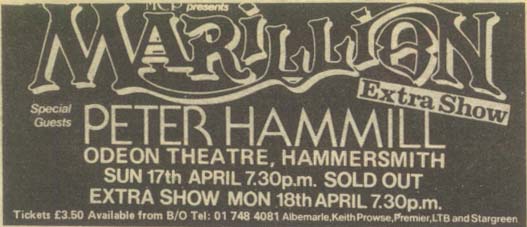 17th or 18th April 1983; Hammersmith Odeon, London (supporting Marillion).