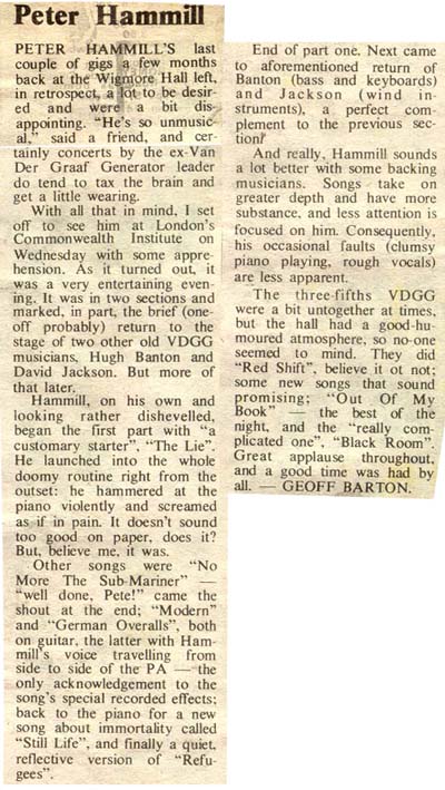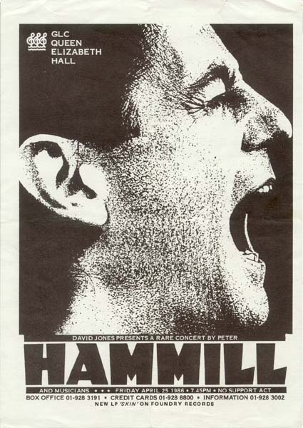 I was acquainted with Nigel and Paul at Charisma and they knew I was interested in PH (I used to spend a lot of time between the Marquee and the Nelly Dean). As it was an important tour, they knew I would be up for putting the gig on, which was just far enough away from London to make it worthwhile. A school friend of mine, Mark Trotman, used to live next door to Peter Hammill's family in Derby and he had introduced us several years before. So at various gigs we'd spent a fair amount of time talking to him, we'd also corresponded through the post occasionally.