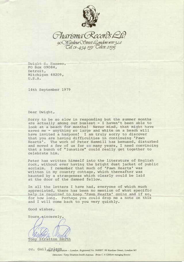 "Peter (Hammill) has written himself into the literature of English rock, without ever having the bright dust jacket of public aclaim" After reading Strat's letter (on left), read this one from David Brown. He got someone else to do the dirty work! |