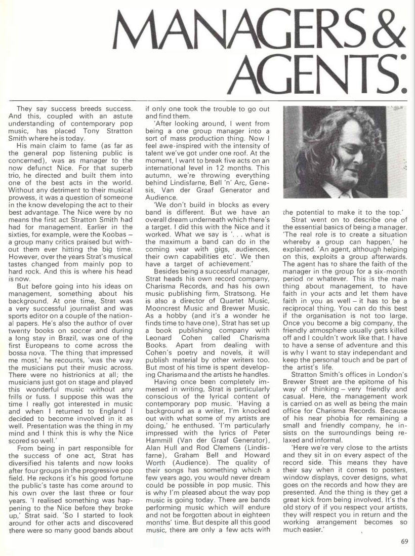 ![]() ![]() ![]() Strat managed various other bands including Genesis, The Nice, Lindisfarne, Audience and The Bonzo's. |