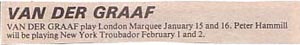 | Van der Graaf Generator gigs attended 1975-1978