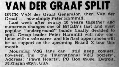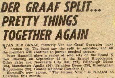 | Peter Hammill's first solo album after the final split was "The Future Now". This is an advert that appeared in the NME in September 1978, advertising both The Future Now and the Brand X tour. |