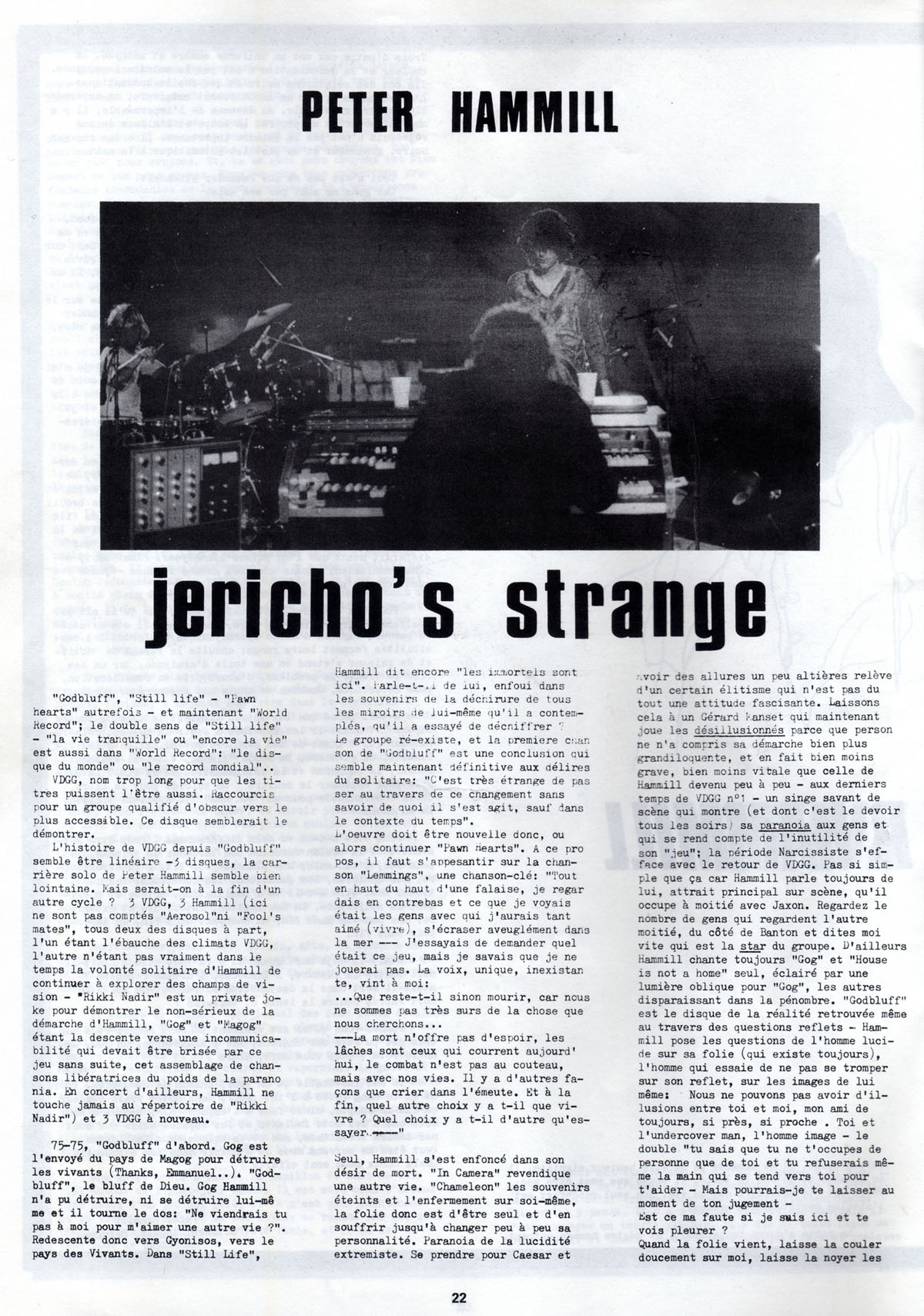 GE (from The Book): "In Arles it was an old amphitheatre and I remember circling it in the plane to check it out before deciding whether to go to the gig first or the hotel first. The promoter had some kind of deal with the hotel where he managed to book it at a discount because it hadn't been fully built or quite finished. So there were a few things that weren't sorted out about it, including the lift. I recall being stuck in the lift with Archie Shepp and Christian Vander of Magma. Not for too long, thankfully. Archie was a bit drunk, I think. And Christian Vander was completely silent, kind of scary."