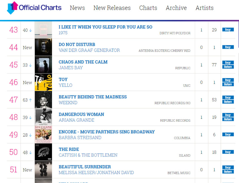 ![]() UK Album Chart 7th Oct 2016 |