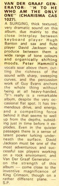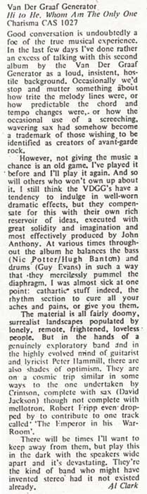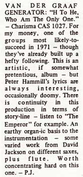 | Melody Maker "There is obviously more to Van der Graaf Generator than immediately meets the eye or ear". (Click on picture or text to enlarge particular section) |
