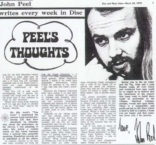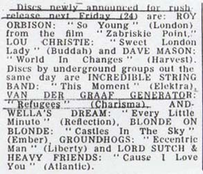 | Release news in NME, 18th April 1970 | Underground Discs in NME, 25th April 1970 | |||