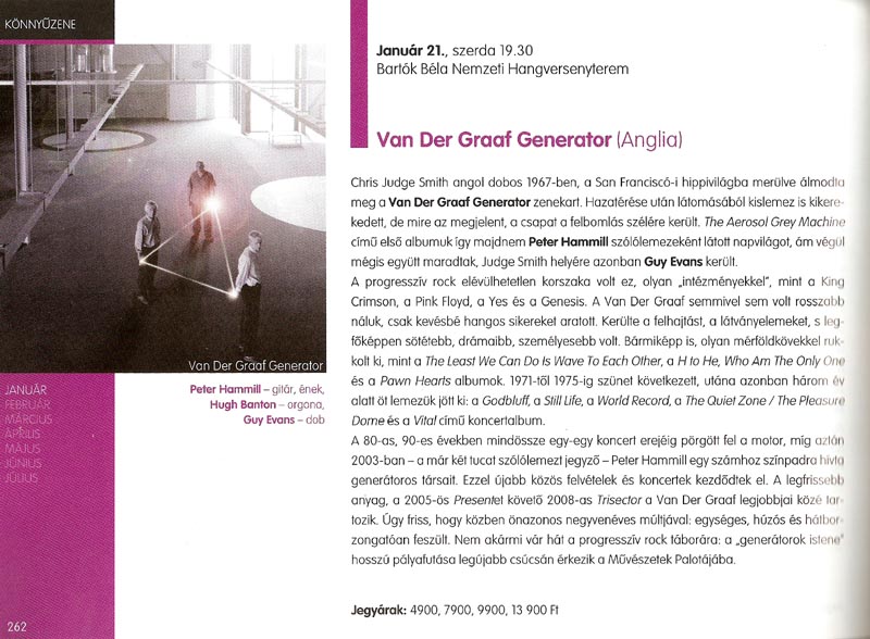 Van der Graaf Generator at the Palace of Arts, Budapest, Hungary on 21st January 2009 |