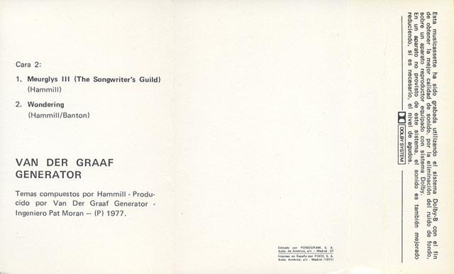 2005 re-master bonus material: When She Comes and Masks (recorded for the John Peel Show - 11th Nov 1976 - same as on Maida Vale "but in slightly more pumped up style") (Follow links for lyrics - use your BACK button to return here) | |